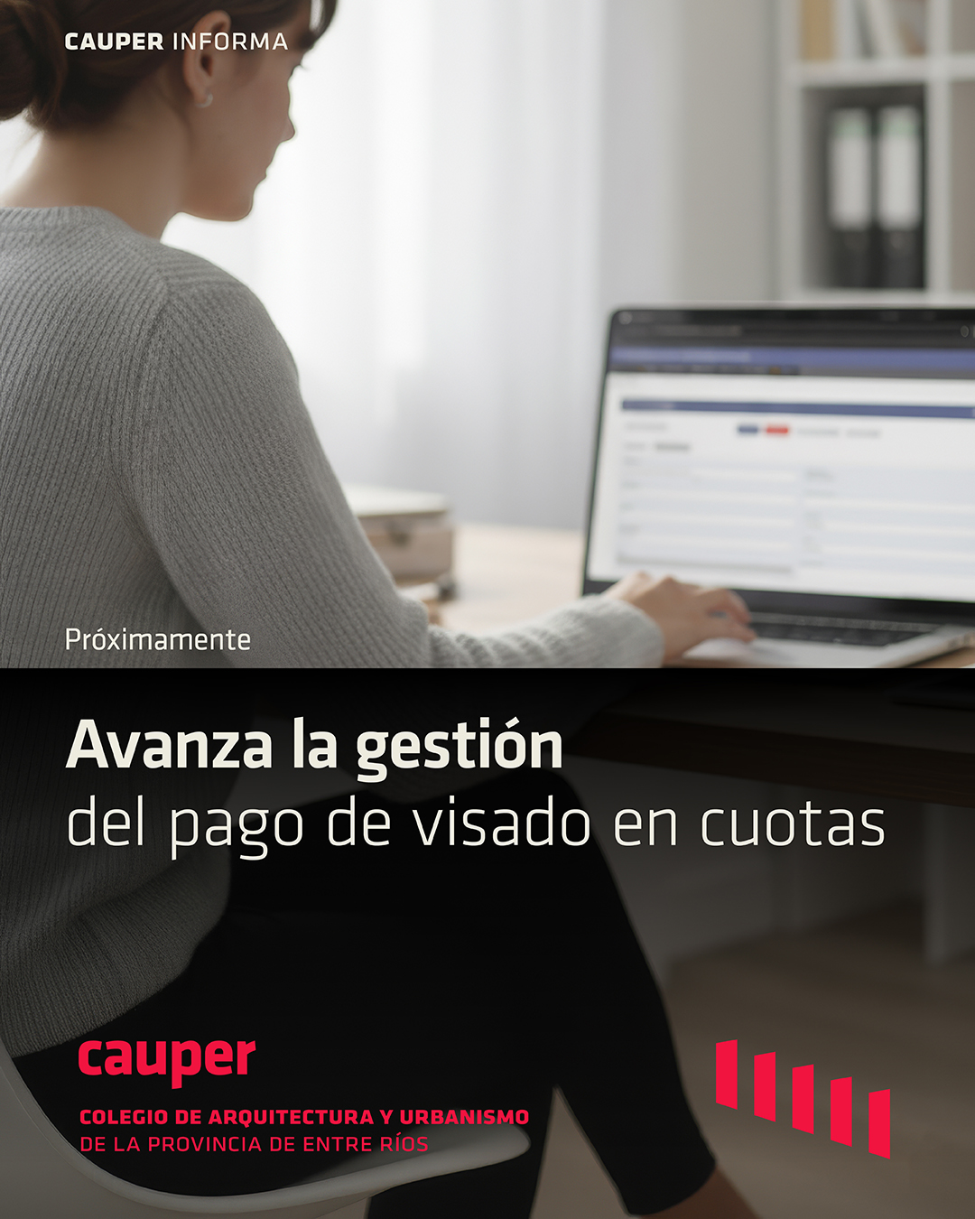 Las autoridades de la Junta Ejecutiva del CAUPER se encuentran avanzando en la gestión para la implementación del pago de visado en cuotas, ofreciendo una alternativa más flexible al momento de abonar el visado, y al mismo tiempo facilitaría la formalidad de pago para los comitentes, contribuyendo a un proceso más ordenado y accesible.