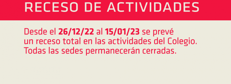 Recordamos a todos/as nuestros/as colegas que por decisión del Directorio del CAPER, todas las sedes del colegio permanecerán cerradas desde el 26 de diciembre de 2022 al 15 de enero de 2023.
