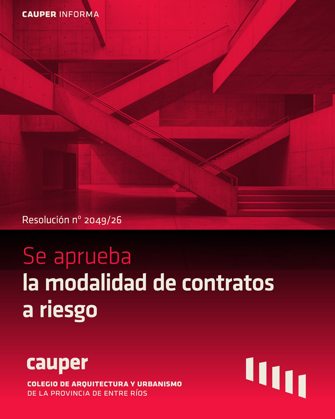 Se informa a la matrícula que, mediante la Resolución de Directorio Nº 2048/26, se ha aprobado la implementación de la modalidad de «contrato a riesgo» en el ejercicio profesional.