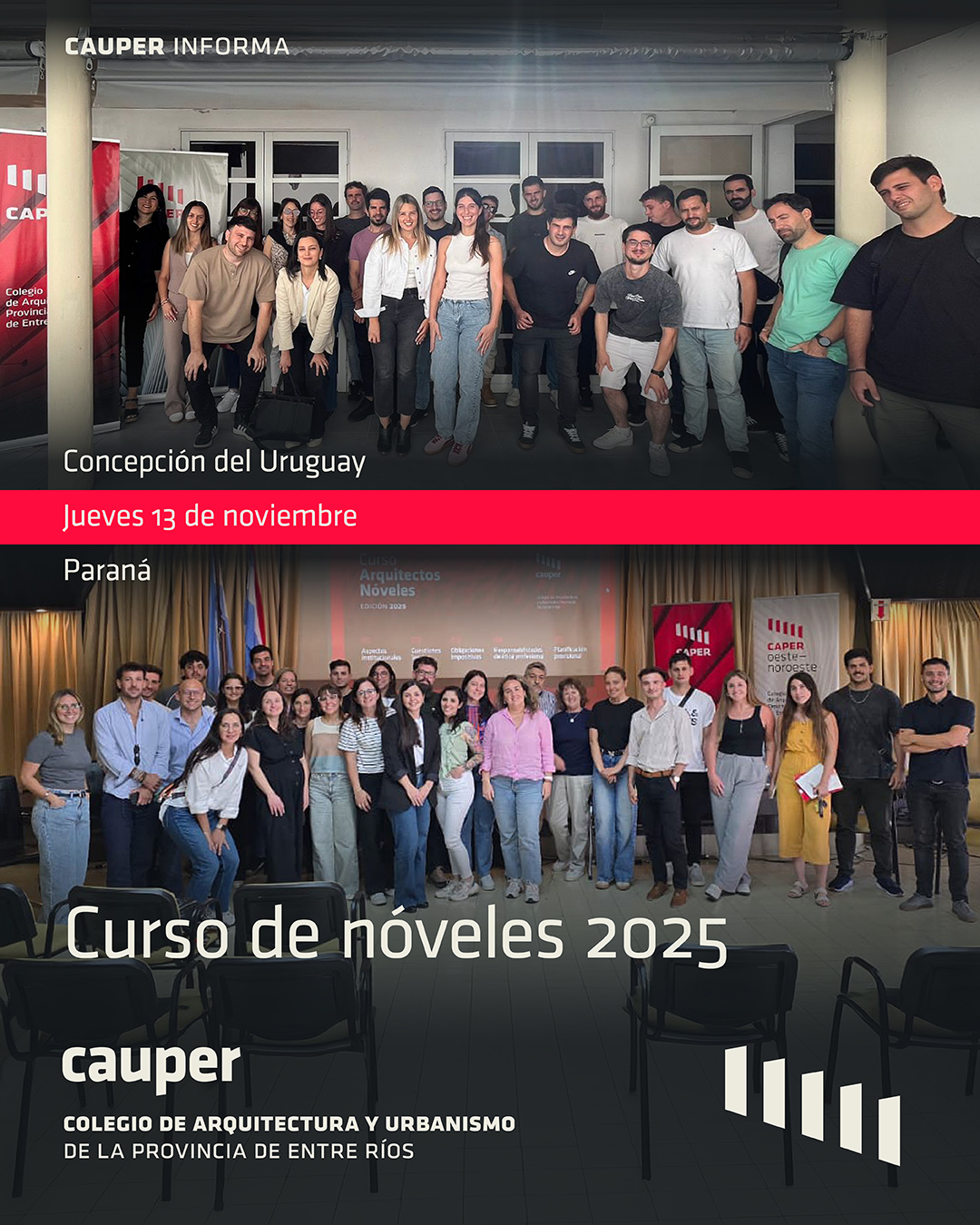 La jornada dejó resultados muy positivos, reafirmando el compromiso del CAUPER con la formación inicial y continua, y con la construcción de un ejercicio profesional cada vez más federal, participativo e inclusivo.