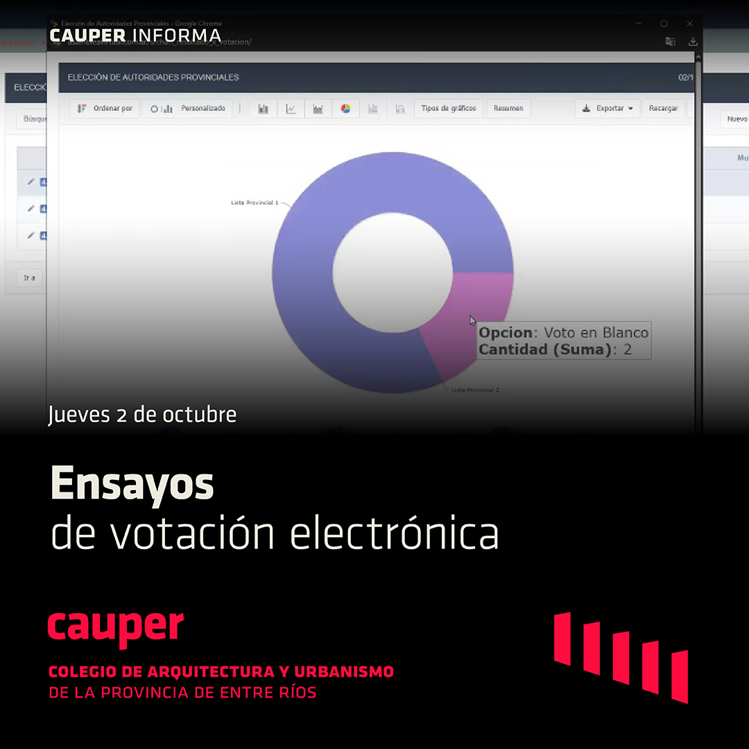 En el día de ayer, jueves 2 de octubre, se llevó a cabo un ensayo del sistema de votación electrónica en el Colegio de Arquitectos de Entre Ríos (CAUPER). En esta primera instancia, la prueba estuvo destinada a los miembros del Directorio y de la Junta Ejecutiva.