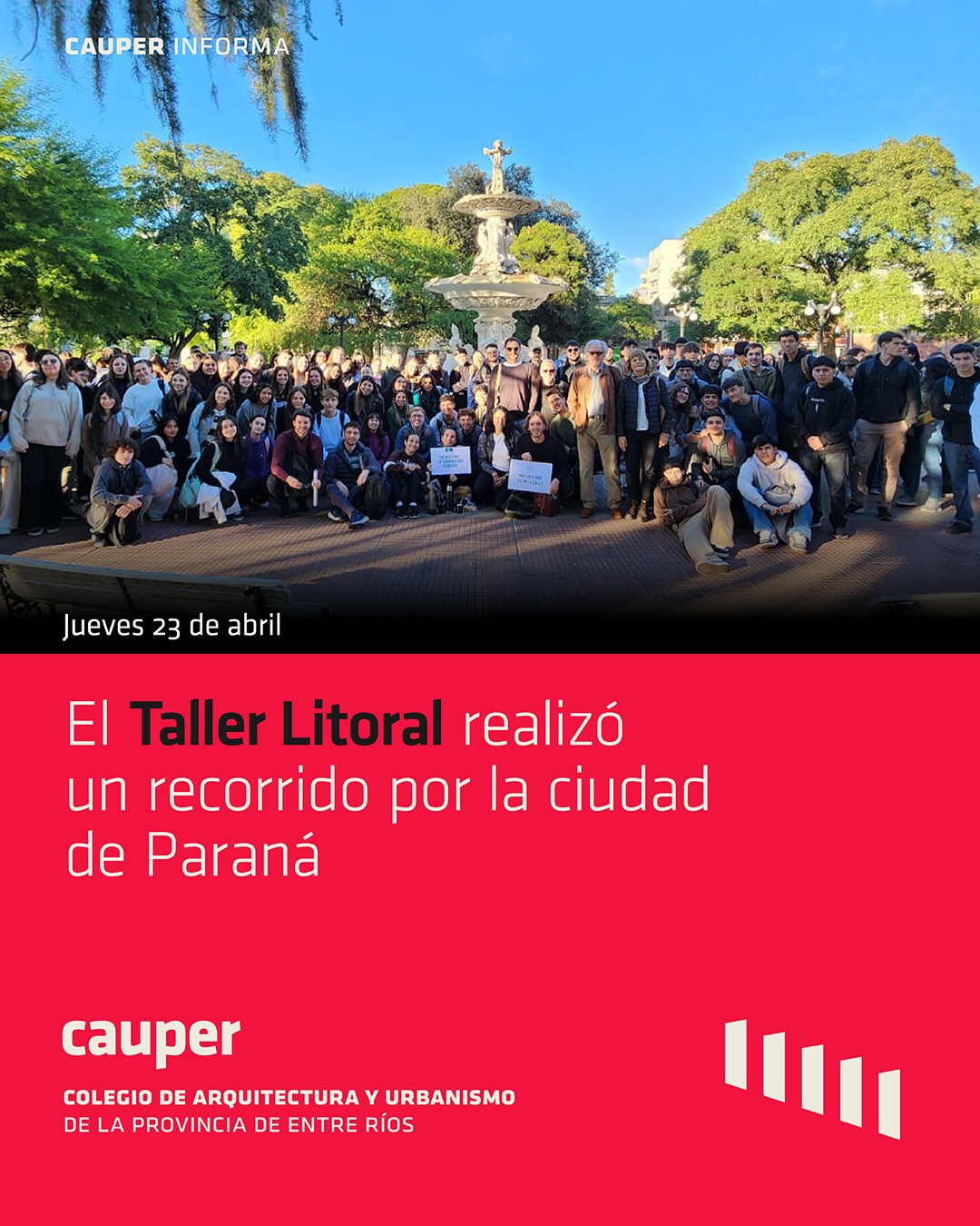 En el marco de las actividades académicas del Taller Litoral, el pasado 23 de abril se llevó adelante un recorrido por distintos sectores de la ciudad de Paraná, como parte de los contenidos desarrollados en la asignatura.