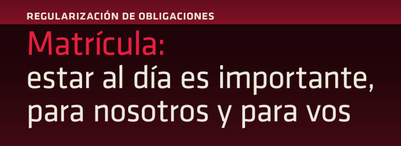 Se comunica a los/as profesionales la necesidad de mantener los pagos de la matrícula al día, ya que se requiere estar libre de deudas para ejercer el derecho al voto, para acceder a la cobertura del seguro por mala praxis y para realizar el trámite de visado. Además recordamos que en diciembre se renueva automáticamente.