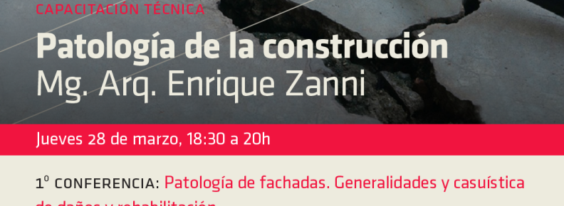 Recordamos que mañana, jueves 28 de marzo, tendrá lugar el primer encuentro virtual del ciclo de conferencias sobre Patología de la Construcción, organizado por la Regional ONO. La sesión inaugural, titulada «Patologías de Fachadas: Generalidades y Casuística de Daños y Rehabilitación», será impartida por el Arq. Mgter. Enrique Zanni.