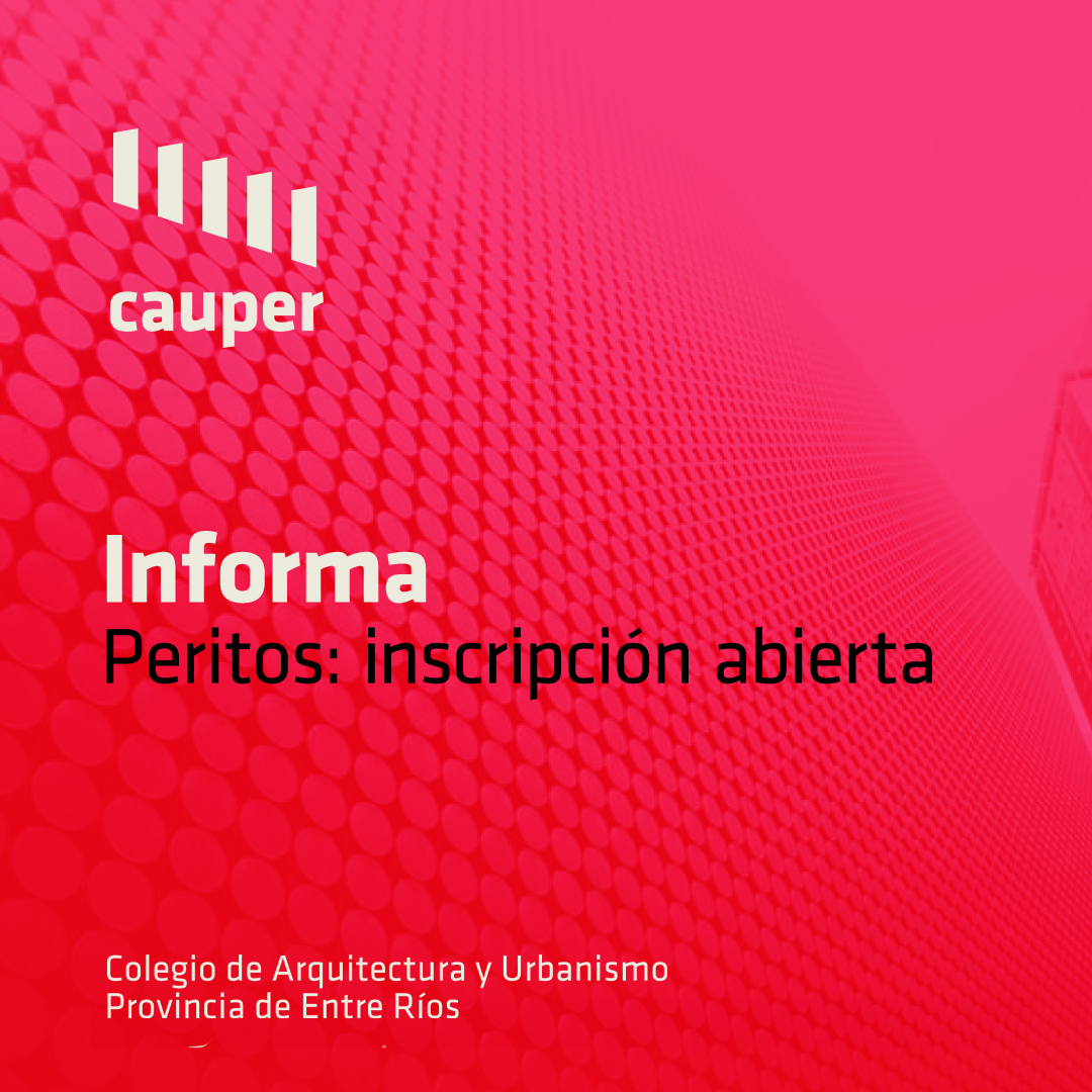 El Colegio de Arquitectos de Entre Ríos informa que se encuentra abierta la inscripción para los y las profesionales interesados/as en actuar como peritos ante los distintos fueros e instancias del Poder Judicial de la Provincia de Entre Ríos durante el año 2026.