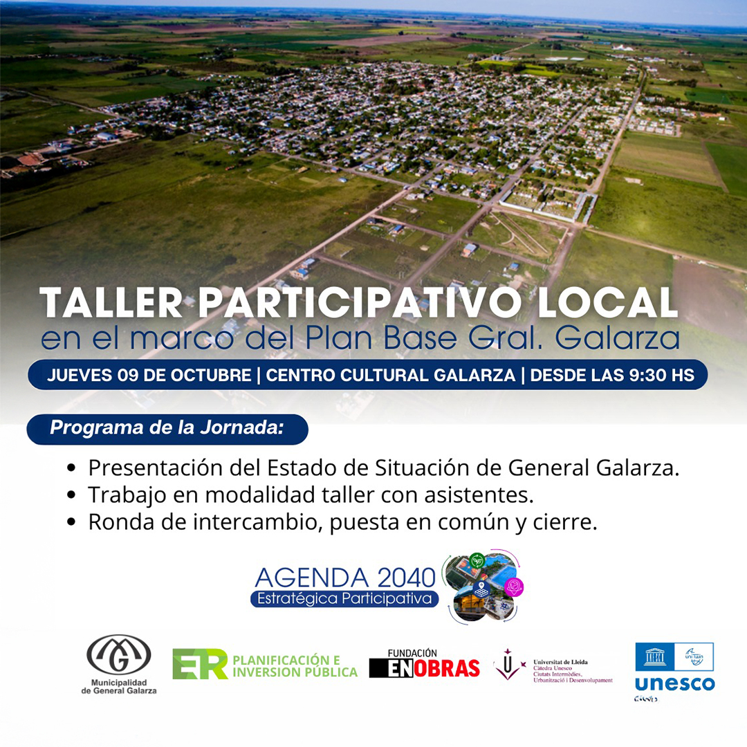 El Colegio hace extensiva la invitación a participar activamente del Taller Participativo Local que se realizará en el marco del Plan Base General Galarza.